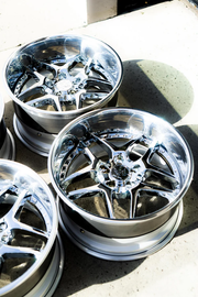 Wheels come standard with polished outer lips and raw inner barrels. Other finishes are additional.